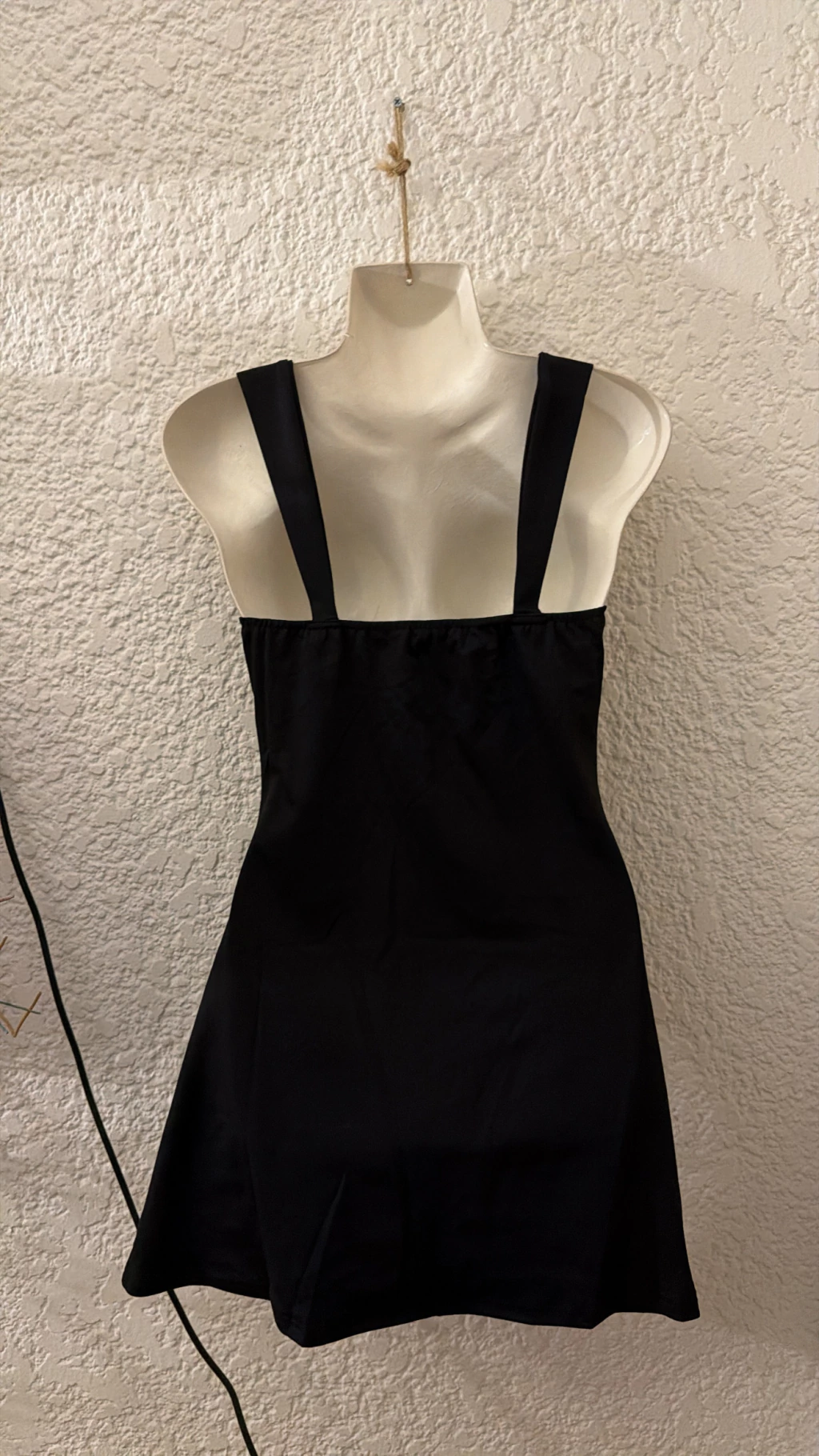 Elasticado, queda ajustado del busto y sueltecito para abajo, es hermoso!🖤